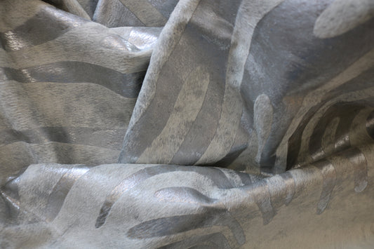 300002 - Cowhide Rug Tapis Peau de Vache SILVER ZEBRA METALLIC BIG SIZE XL - Collection Quebecuir Premium