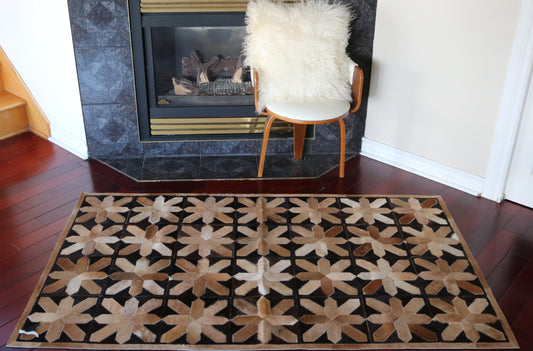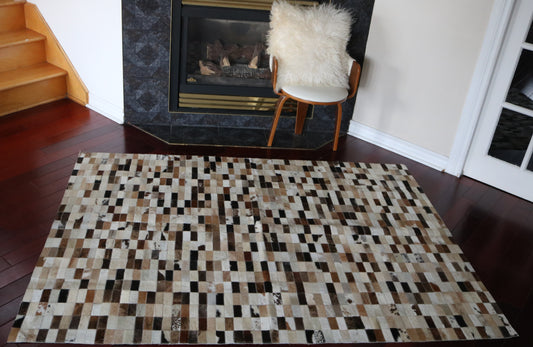 Patchwork rugs blend history and artistry, crafted by stitching together leather pieces into a unique, colorful design. Each rug tells a story, combining various patterns, textures, and shades for a striking, one-of-a-kind look. Durable and eco-friendly, they add warmth and character to any space, making them a perfect choice for eclectic and modern interiors alike.