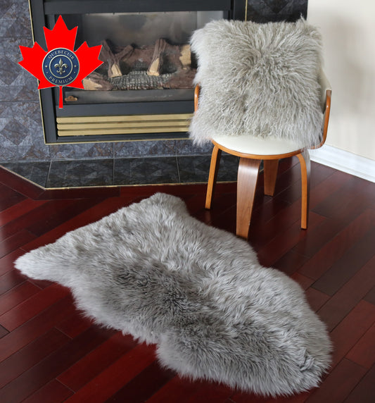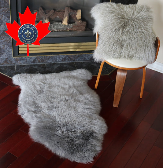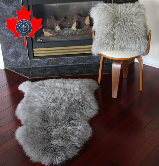 99105 Tapis GRAND peau de Mouton Sheepskin BIG SIZE Collection Quebecuir Premium GREY X 1