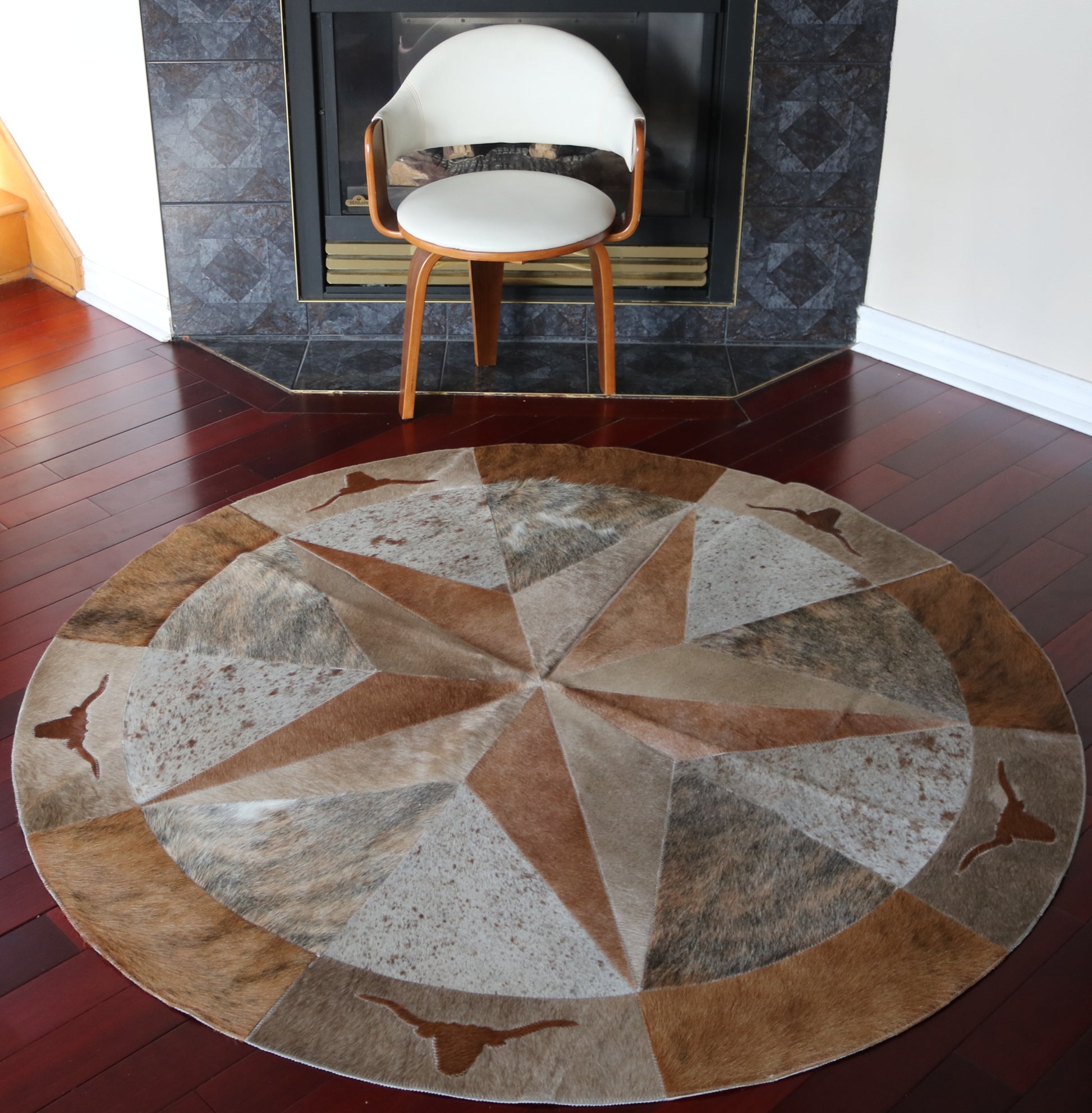 99914 Cowhide rug patchwork Collection Quebecuir Premium MANDALA ROUND BIG SIZE XXL WESTERN STYLE